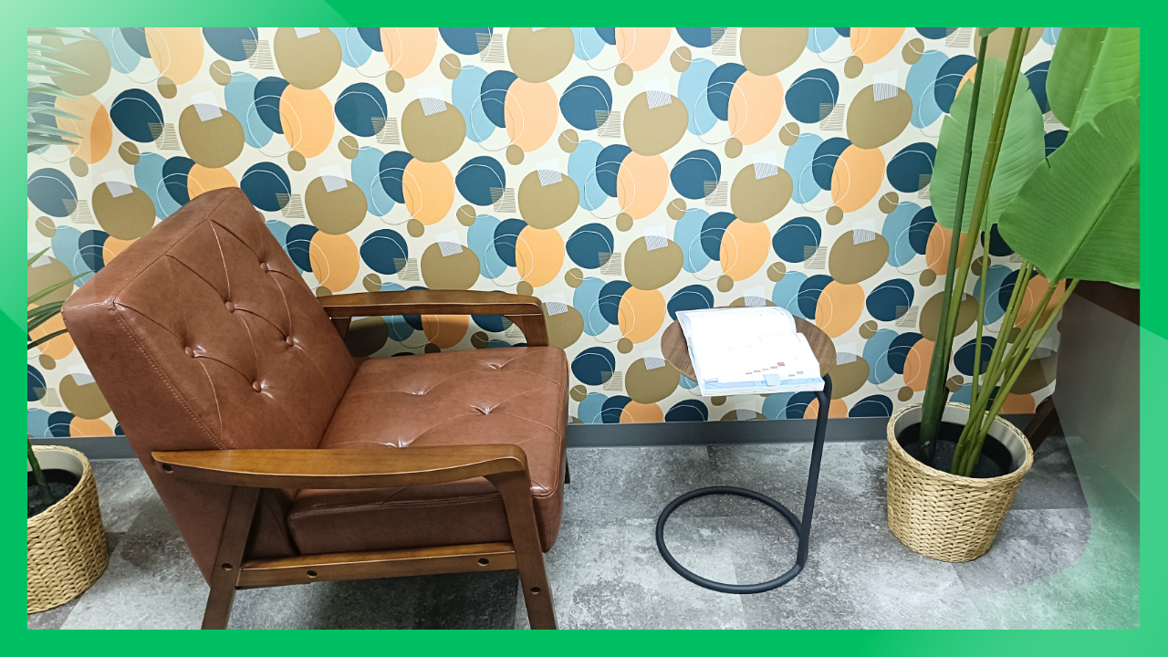 勉強の「マンネリ化と集中力の低下」が起きたらここで勉強しよう。緑に囲まれ、疲労を癒やす「集中ソファ」。長文読解や思考に最適な一人用ソファです。