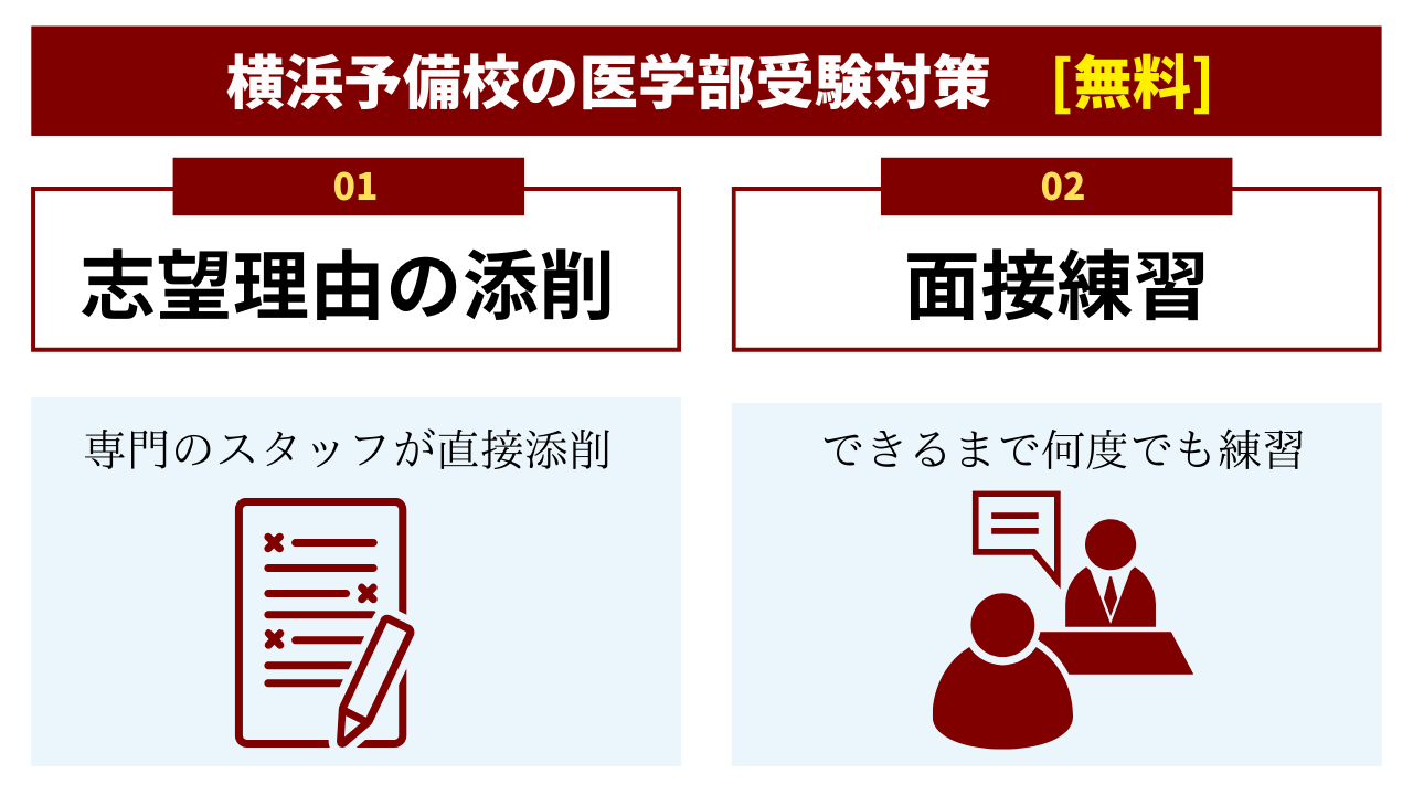 医学部受験を目指す受験生の方や保護者の方は、必要な面接や小論文などの対策も専門のスタッフが在籍する横浜予備校にお任せください。
