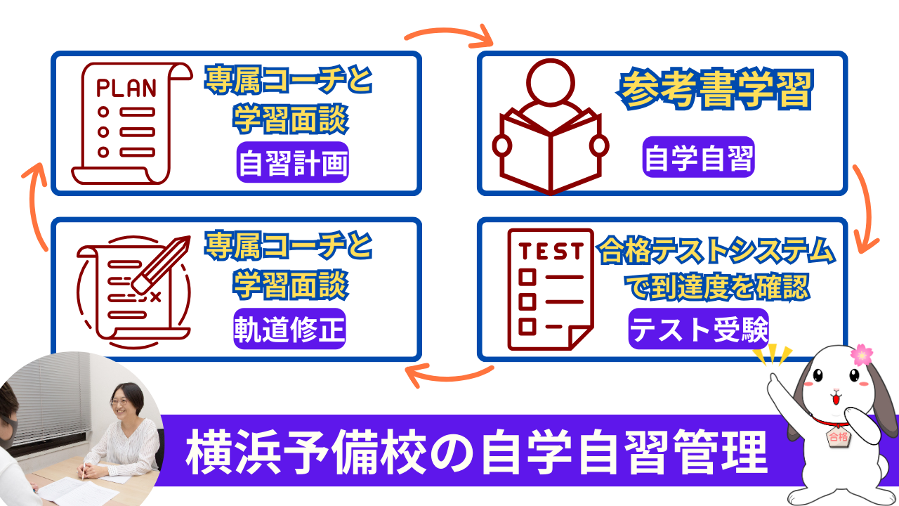 横浜予備校では専属コーチがあなたに付き、あなたの学習の成果をチェックする体制が整っています。