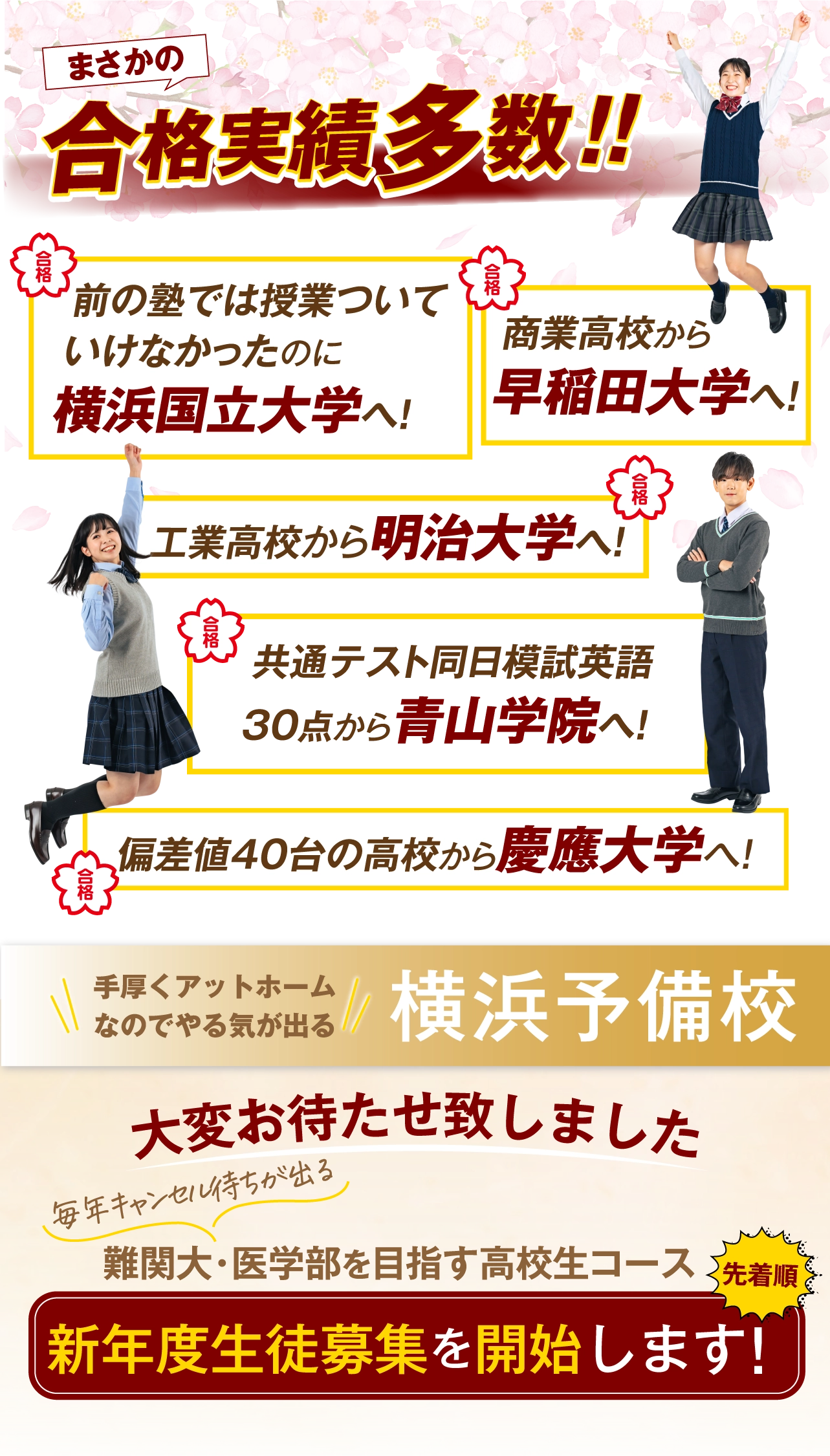 横浜予備校は誓いました。「最高の教育を、適正な価格で提供する」と。