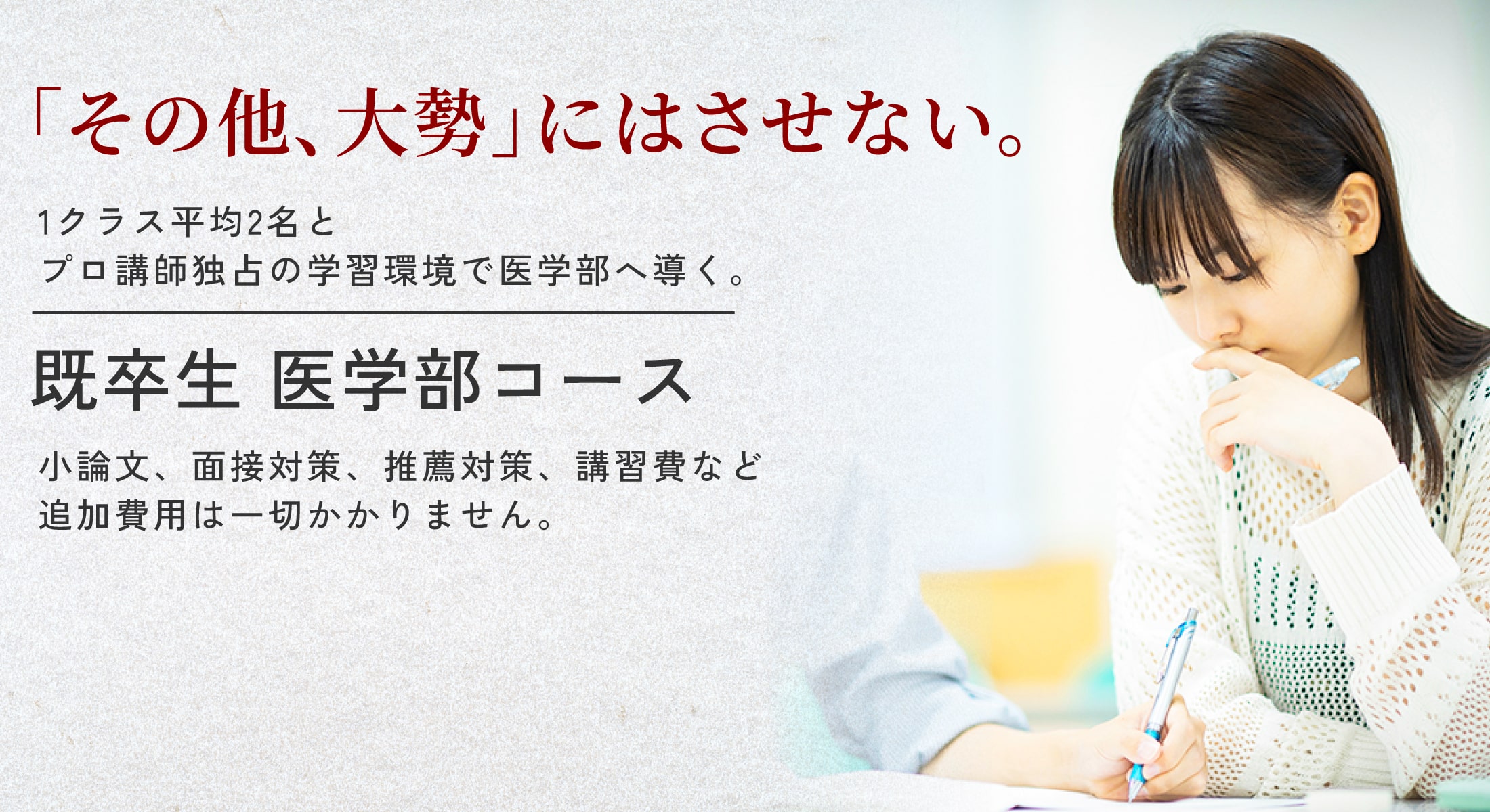 「生徒に、本気で向き合う講師」と「必要なだけ授業を受けられる環境」それだけです。